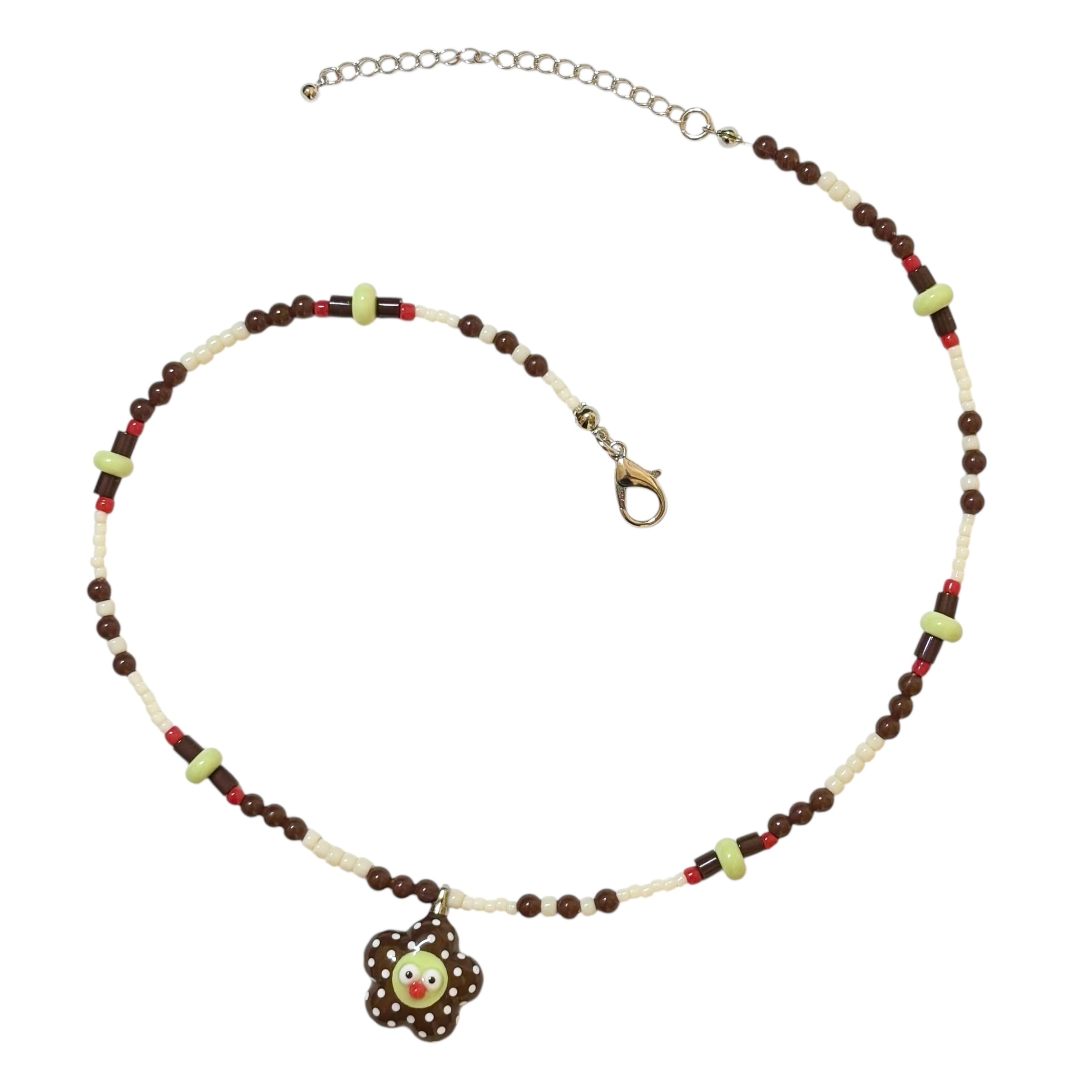 【当日発送】ドット柄お花ちゃんネックレス 緑ブラウン