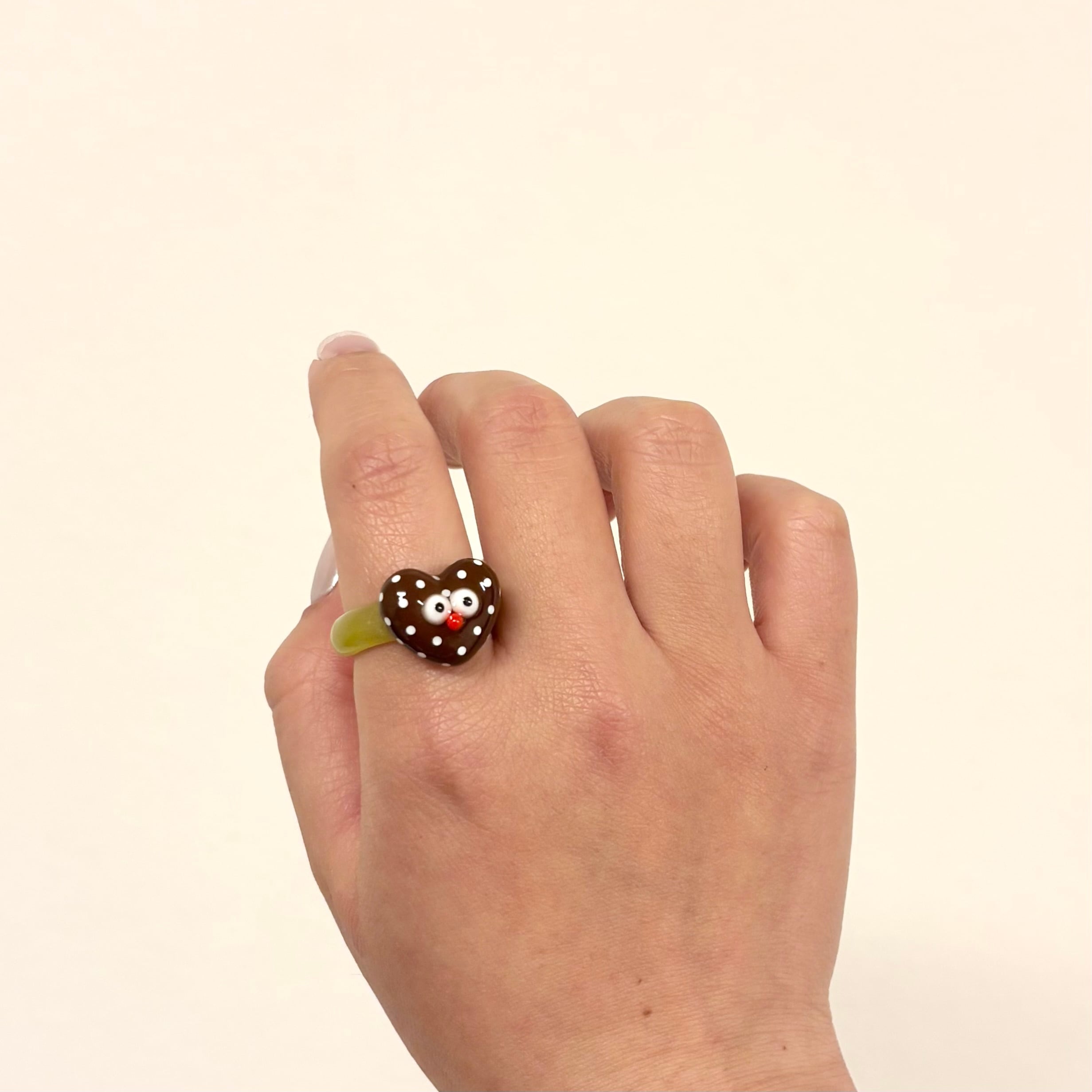 【1~3日以内発送】ドット柄ハートちゃんリング 黄緑ブラウン