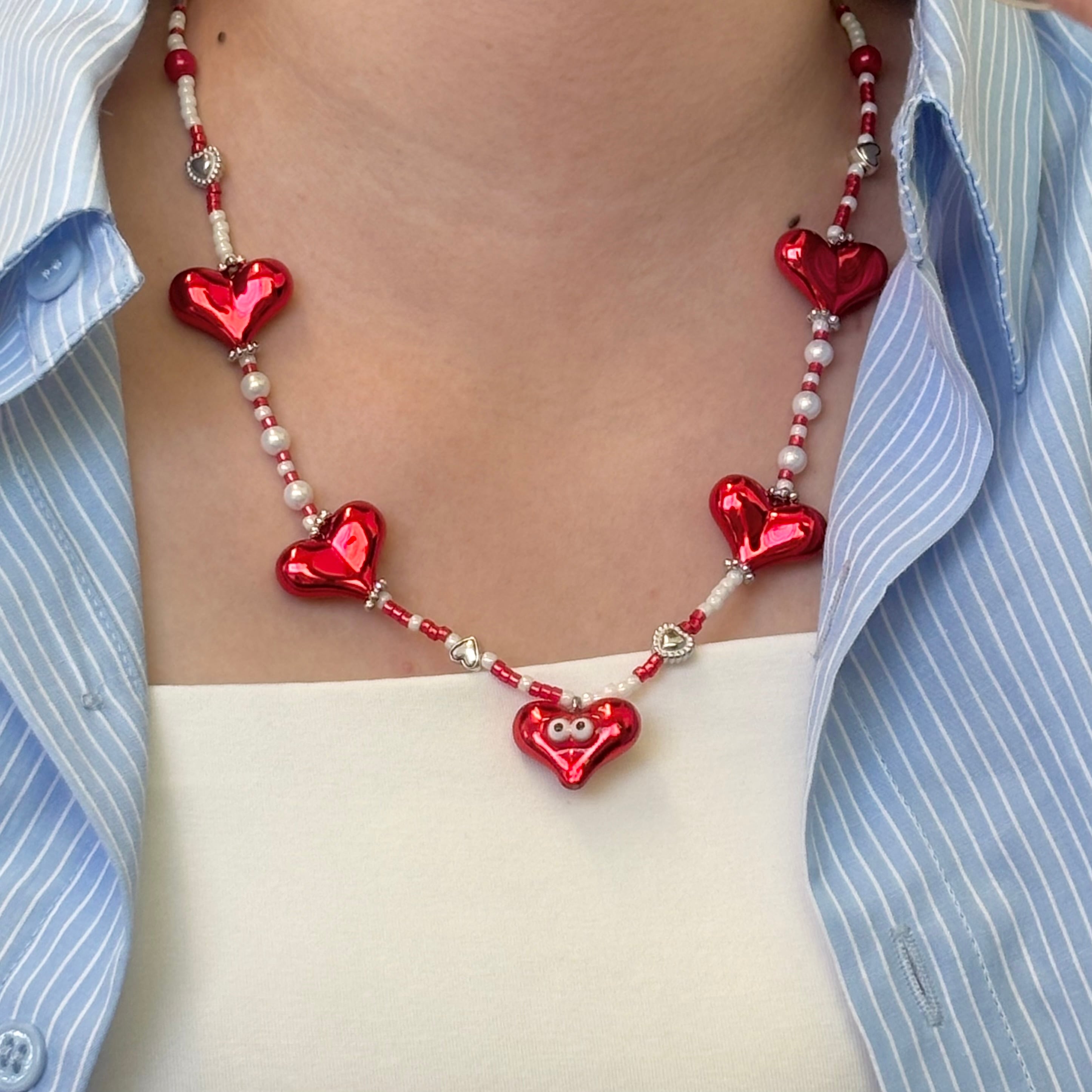 【1~3日以内発送】ミラーハートちゃんネックレス 赤