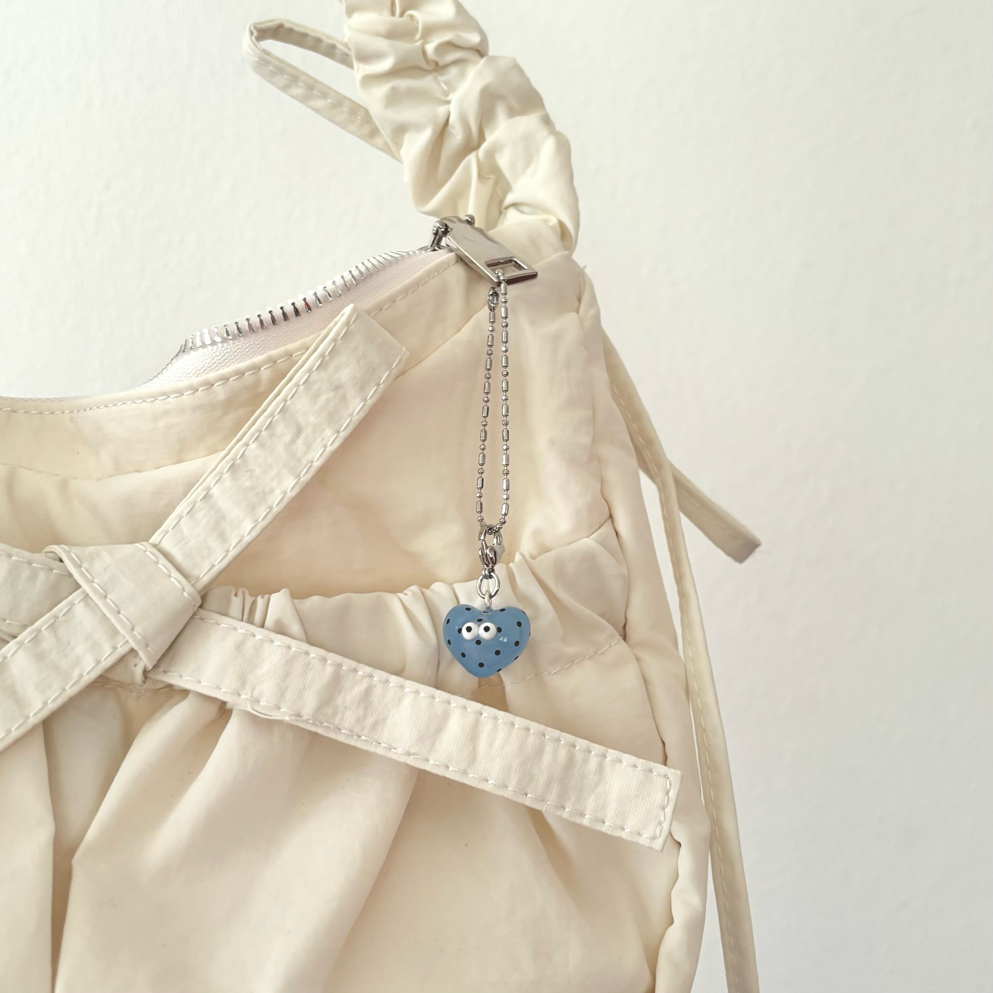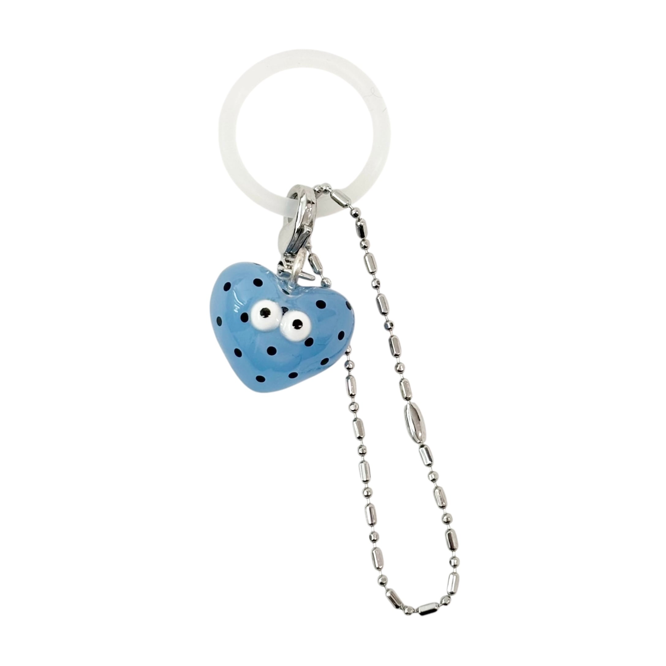 少し透け感のある水色のドット柄ハートちゃんがこちらを見つめます。