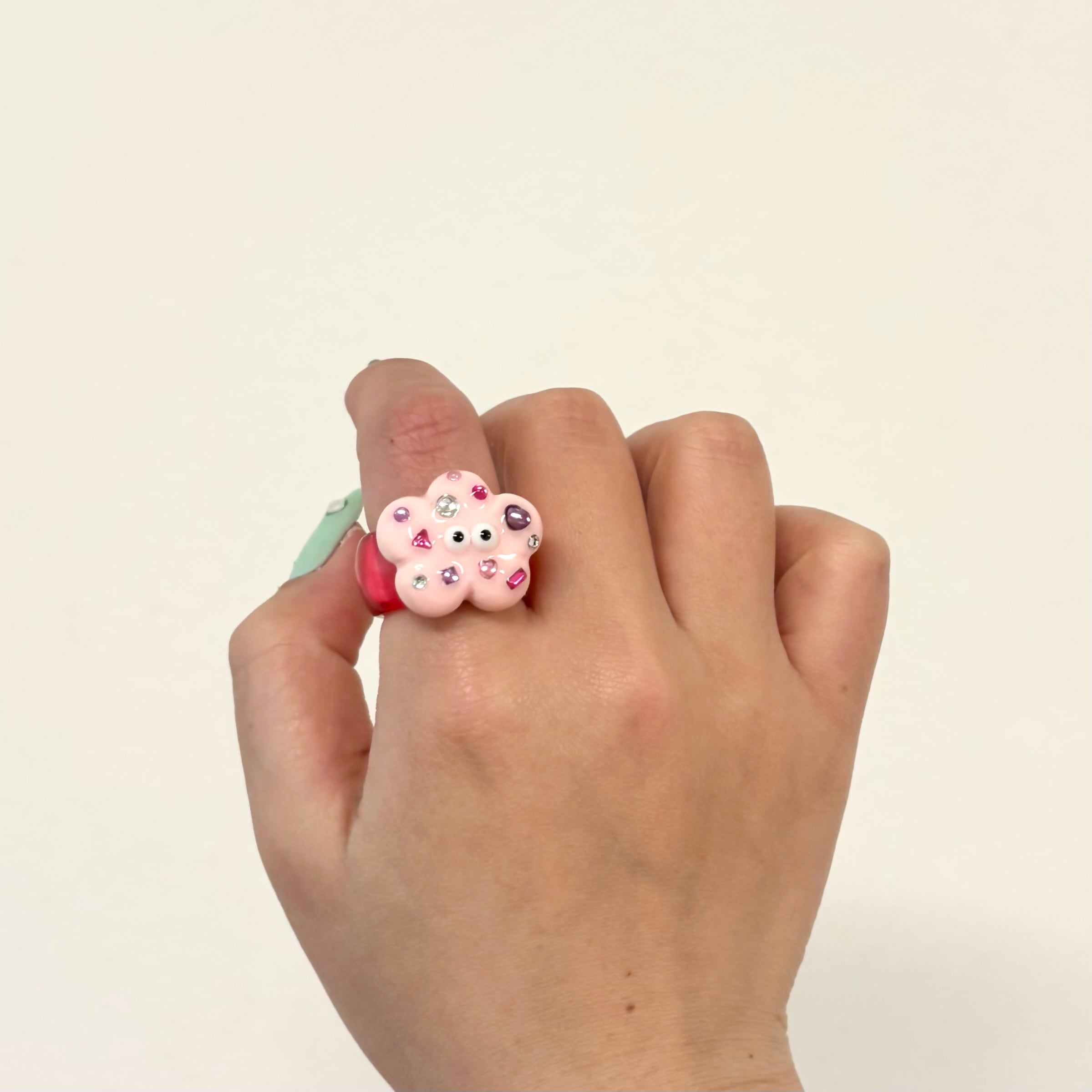 【1~3日以内発送】キラキラくもちゃんリング ピンク