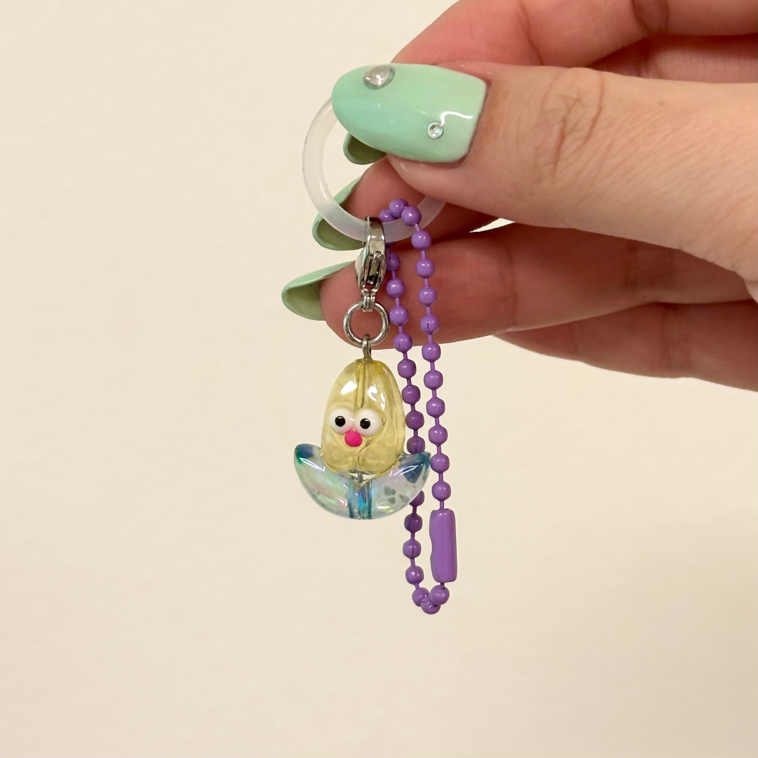 黄色くてピンクの鼻のチューリップちゃんめじるしアクセサリーです。